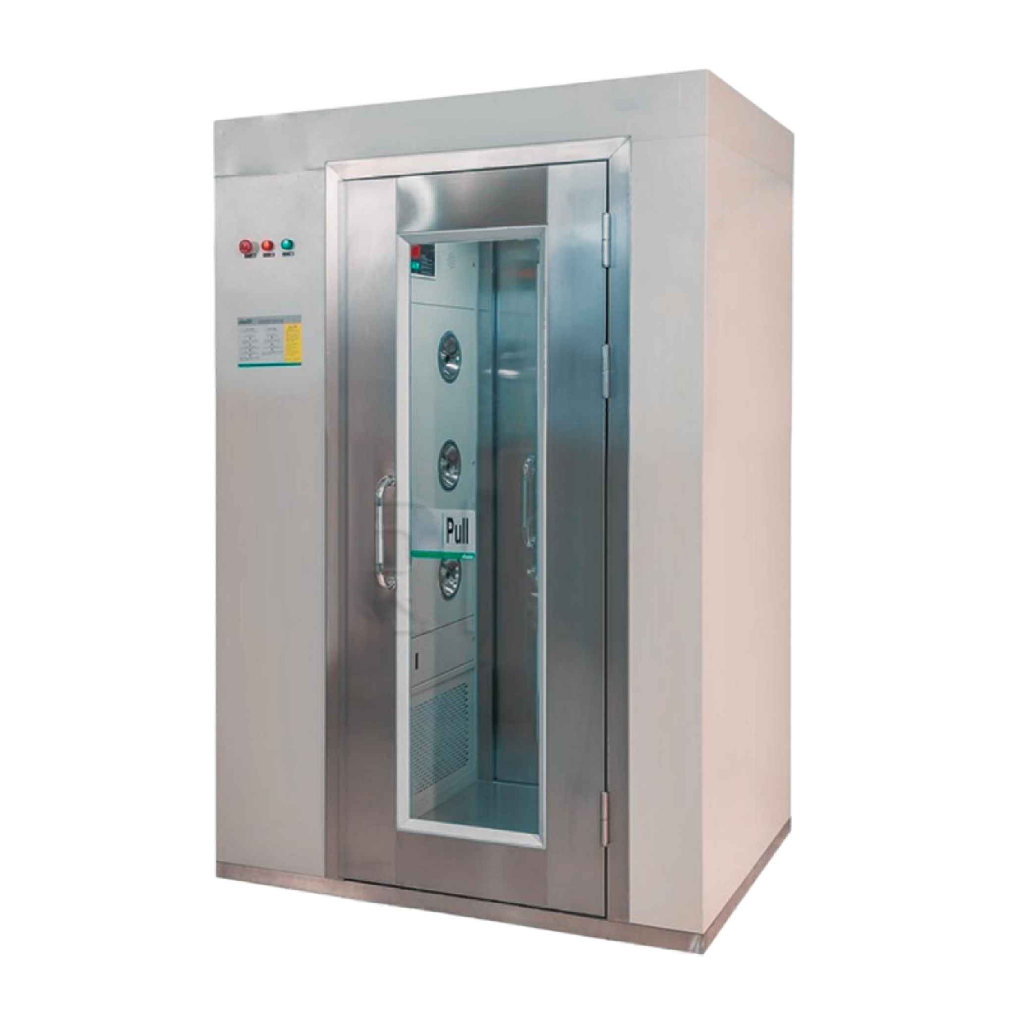 1. El sistema de ducha de aire adopta un control totalmente automático, sellado electrónico de doble puerta y soplado por inducción infrarroja.